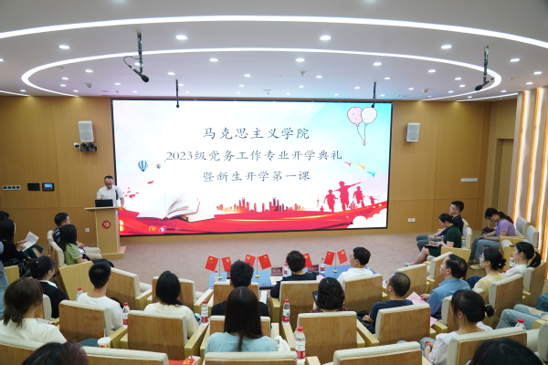 9月11日,马克思主义学院2023级党务工作专业开学典礼在马克思主义学院学术报告厅举行。我校党委副书记张新,马克思主义学院党总支书记喻永均、院长杨飏、副院长张媛艺,以及各党支部书记、教研室主任、首届党务工作专业学生和辅导员参加典礼仪式。典礼由张媛艺主持。