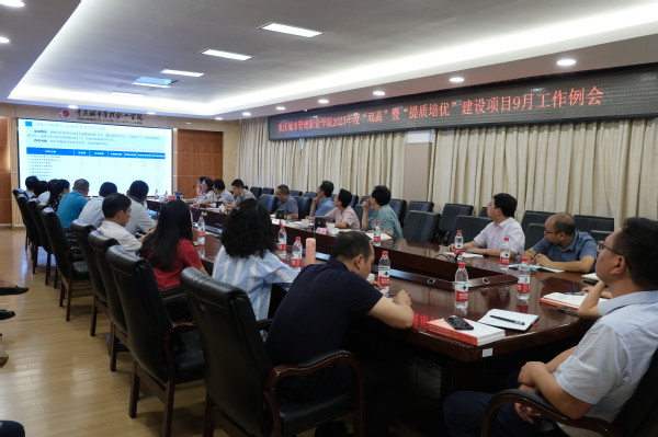 9月12日,我校在办公楼201会议室举行了2023年度“双高”暨“提质培优”9月工作例会。党委书记邹晓波,副校长罗小秋、周毅、莫堃出席。“双高计划”暨“提质培优”建设项目负责人、相关职能部门负责人、二级学院院长参加。会议由双高办公室常务副主任黄蘋主持。