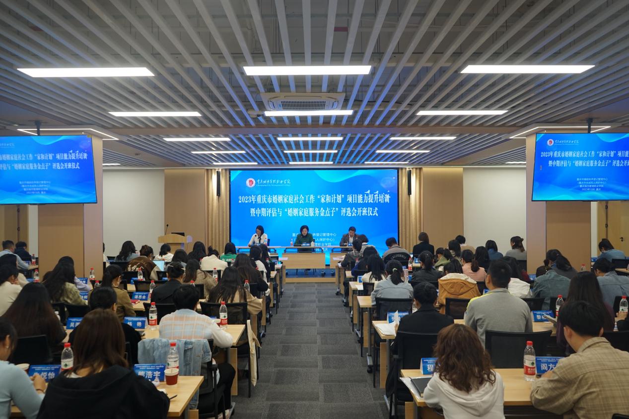 10月10—12日,由重庆市婚姻收养登记管理中心(重庆市未成年人保护中心)主办,我校承办的重庆市2023年“家和计划”项目能力提升培训暨中期评估与“婚姻家庭服务金点子”评选会在我校学术交流中心顺利举办。来自全市各区县的婚姻家庭社会工作者、社工机构负责人共100余人参加了本次培训。培训会议由重庆市婚姻收养登记管理中心(重庆市未成年人保护中心)副主任梁万琴主持。