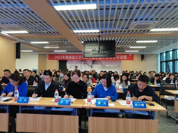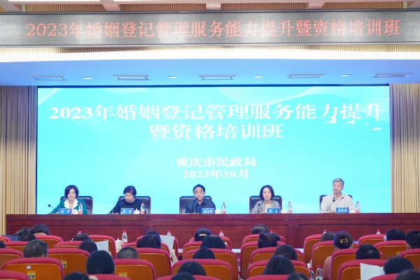 为进一步提高全市婚姻登记员业务能力和综合素质,提升婚姻管理服务水平,10月23-26日,由重庆市民政局主办、重庆市婚姻收养登记管理中心(重庆市未成年人保护中心)协办、我校承办的重庆2023年婚姻登记管理服务能力提升暨资格培训班在学校学术交流中心顺利举办。来自全市各区县的民政部门分管领导、社会事务科负责人、婚姻登记机关负责人、婚姻登记员等160余人参加了本次培训。