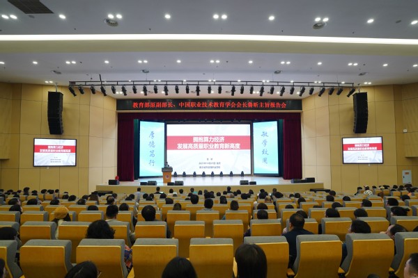 在全党上下深入学习贯彻习近平新时代中国特色社会主义思想,在职教战线加快推进现代职业教育体系建设改革之际,10月25日,我校邀请中国职业技术教育学会会长、教育部原副部长鲁昕来校作“拥抱算力经济:发展高质量职业教育新高度”主旨报告。中国职业教育学会常务副会长宋敏出席报告会。学校党委书记邹晓波主持。全校400余名师生现场聆听。