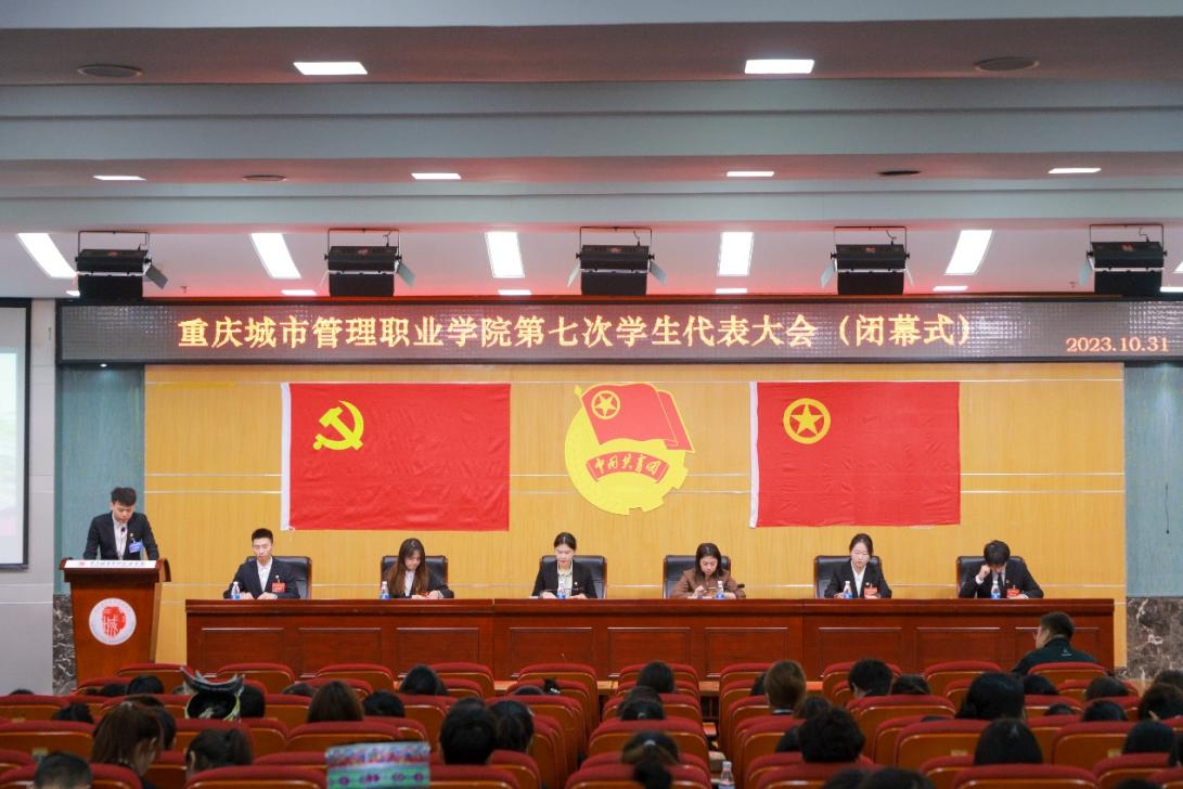 最后召开大会闭幕式。首先由总监票人王科辉公布学生会主席团候选人,常任代表候选人得票数。根据选举办法和选举计票结果,确定5名同学为重庆城市管理职业学院第十九届学生会主席团成员,8名同学为重庆城市管理职业学院第七次学代会常任代表。审议通过大会决议后,全体起立奏唱《中国共产主义青年团团歌》,至此,重庆城市管理职业学院第七次学生代表大会胜利闭幕!