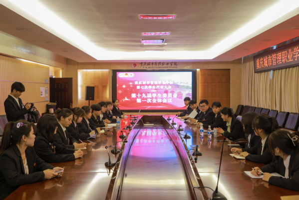 闭幕式后,会议选举产生的新一届学生会主席团成员和第七次学代会常任代表在办公楼201会议室召开了重庆城市管理职业学院第十九届学生委员会第一次全体会议。共同选举产生了新一届学生会执行主席。会议中,团委书记王婧在总结讲话中提出:“校院两级学生会要认真履职尽责,坚持全心全意为同学们服务,充分发挥桥梁纽带作用。急同学们所急,想同学们所想,争做青年友,不做学生官”。