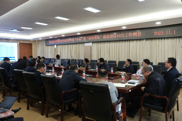 11月1日,我校在办公楼201会议室举行了2023年度“双高”暨“提质培优”10月工作例会。学校校长邓明国,副校长罗小秋、莫堃出席,“双高计划”暨“提质培优”建设项目负责人、相关职能部门负责人、二级学院院长参加。会议由双高建设办公室常务副主任黄蘋主持。