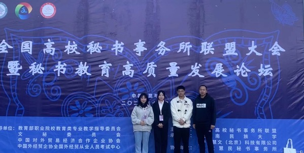 11月9—12日,第四届全国高校秘书事务所联盟大会暨秘书教育高质量发展论坛在云南民族大学隆重举行,来自全国开办秘书学专业的本科院校和现代文秘专业的高职院校150余名师生代表参加会议。会上举行了全国高校秘书事务所联盟成员单位PPT设计展示技能比赛颁奖仪式,我校文化与旅游学院同沁秘书事务所选派的参赛队伍荣获二等奖,张东、衣露老师获优秀指导老师称号。