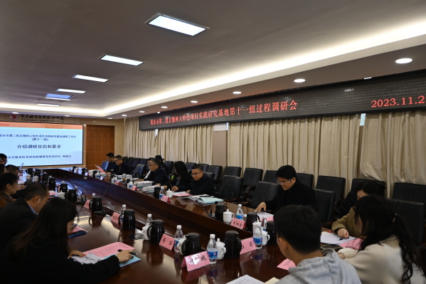 11月23日,重庆市第二批立德树人特色项目实践研究基地过程调研工作会(第十一组)在我校召开。重庆市教育科学研究院组织人事处、德育所相关领导干部,部分高校评审专家,各研究基地项目组负责人,我校副校长周毅、袁国,党委学生工作部相关人员参加会议。