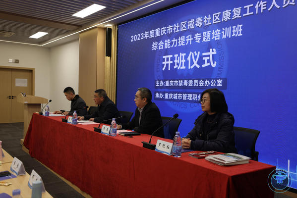 12月4日,2023年重庆市社区戒毒社区康复工作人员综合能力提升专题培训的开班仪式在我校学术交流中心敏学厅顺利举行。重庆市禁毒办副主任、市公安局禁毒总队政委曾军,重庆市禁毒办公室副主任、重庆市公安局禁毒总队副总队长李彦,我校党委委员、副校长周毅,通识教育学院副院长罗纪红出席开班仪式。开班仪式由李彦主持。
