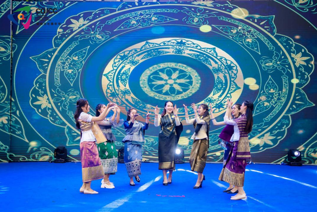 除文化集市展位外,我校7名老挝国际学生表演了独具民间特色的老挝芦笙传统舞蹈,学生们舞姿轻灵,展现了独特的魅力。