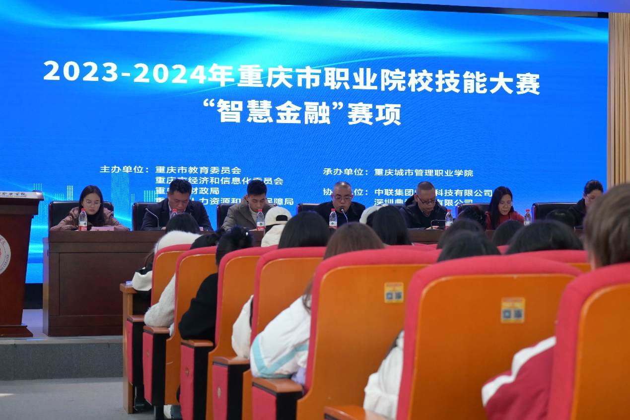 12月20-22日,由重庆市教育委员会、重庆市经济和信息化委员会、重庆市财政局和重庆市人力资源和社会保障局共同主办的2023-2024年重庆市职业院校技能大赛“智慧金融”赛项在我校顺利开展。比赛共有来自16所高职院校的32支队伍,128名选手参加。