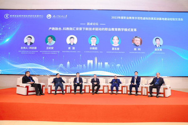 12月22日,由教育部高等学校科学研究发展中心主办、苏州市职业大学承办的全国“2023年度职业教育示范性虚拟仿真实训基地建设经验交流会”在江苏省苏州市召开。我校受邀参会,学校党委委员、副校长袁国以《融汇“科”与“教”,为教学模式变革赋能》为题在“产教融合、科教融汇背景下新技术驱动的职业教育教学模式变革”为主题的圆桌论坛上作了经验分享和发言交流。