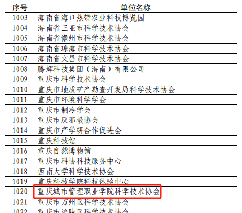 近日,中国科协办公厅发布了《关于对2023年全国科普日有关组织单位和活动予以表扬的通知》,我校科协荣获“2023年全国科普日优秀组织单位”称号。这是学校首次被中国科协授予此荣誉,同批获此殊荣的重庆高校仅3所,我校是唯一一所高职院校。