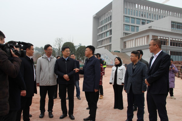 3月5日,市委教育工委书记、市教委主任刘宴兵到我校荣昌校区调研校区建设情况。荣昌区委书记高洪波、区政府副区长李德伟,市教委职成教处处长吴岚、市教委办公室副主任胡天勇和学校党委书记邹晓波,党委副书记、校长邓明国等陪同调研。