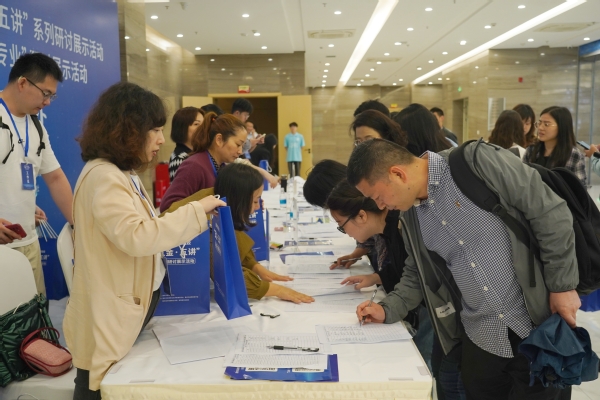 活动现场,在与会领导、教师的见证下,活动主办单位、承办单位的相关领导上台共同按下大屏活动启动触摸手掌,标志着“五金·五讲”系列研讨展示活动正式启动。
