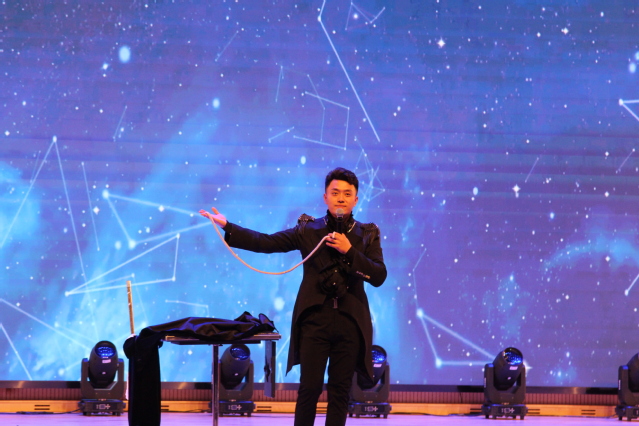 重庆市劳动人民文化宫的舞蹈演员们以整齐划一的动作和饱满的激情表演了舞蹈《欢欣鼓舞》,瞬间点燃了全场气氛。随后,相声、杂技、魔术 弹唱等节目轮番上演,将现场气氛推向了一个又一个高潮。节目形式丰富多样,包括相声《重庆方言》、杂技《足下生辉》、魔术《鸽剧魅影》、歌伴舞《日不落》《下个路口见》、舞蹈《一起向未来》杂技以及乐器联唱、歌曲串烧等。