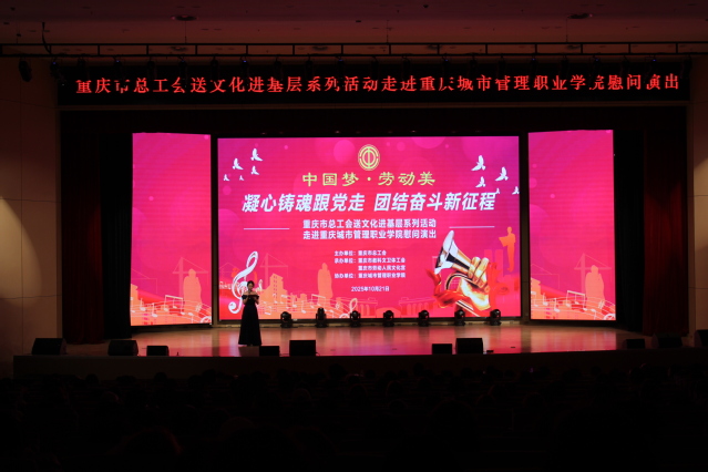 10月21日,重庆市总工会“送文化进基层”系列活动走进我校,为全校师生带来了一场以“中国梦·劳动美”为主题的精彩慰问演出。下午2:30,舞台灯光逐渐亮起,五彩斑斓的光束在演播大厅交织出一幅幅美丽的画卷,为演出拉开了序幕。