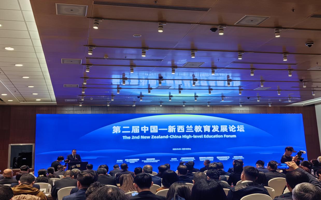 10月30日,第二届中国—新西兰教育发展论坛在北京举办,本届论坛以“育见新机·融通中新教育未来”为主题,由中国教育部和新西兰教育部共同主办,教育部中外人文交流中心与中国教育国际交流协会、新西兰教育国际推广局、新西兰大学协会共同承办。来自中新两国教育部门、院校和教育机构的200余位领导和代表参会。我校党委副书记、校长邓明国应邀参会。学校国际合作与交流中心主任孙玉中等工作人员陪同参会。