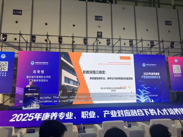 会议设立两大分论坛,分别围绕“康养产业、职业、专业对应融合下的人才培养体系建设”与“从机构到社区居家养老照护人才的培养探索”展开深入研讨。田奇恒在分论坛一“康养产业、职业、专业对应融合下的人才培养体系建设”中,以《职教突围三维度:养老服务新职业、新专业与新课堂的构建逻辑》为题作交流发言。