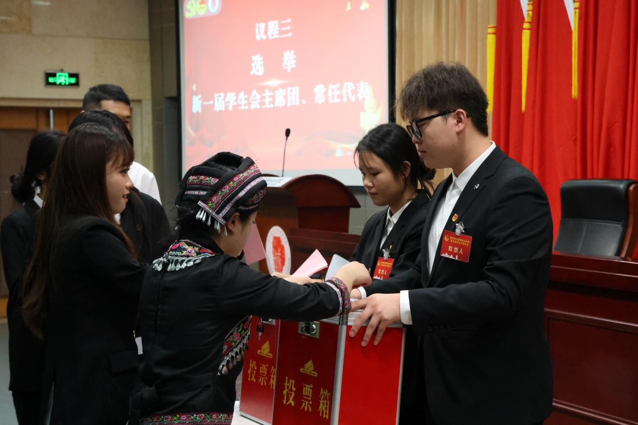 开幕式结束后,随即召开了第九届学生代表大会选举大会,大会审议并通过了大会选举办法及学生会主席团候选人,常任代表名单。选举环节由全体参会代表共同参与,严格按照大会选举办法,投票选举产生了第二十一届学生会主席团及常任代表。