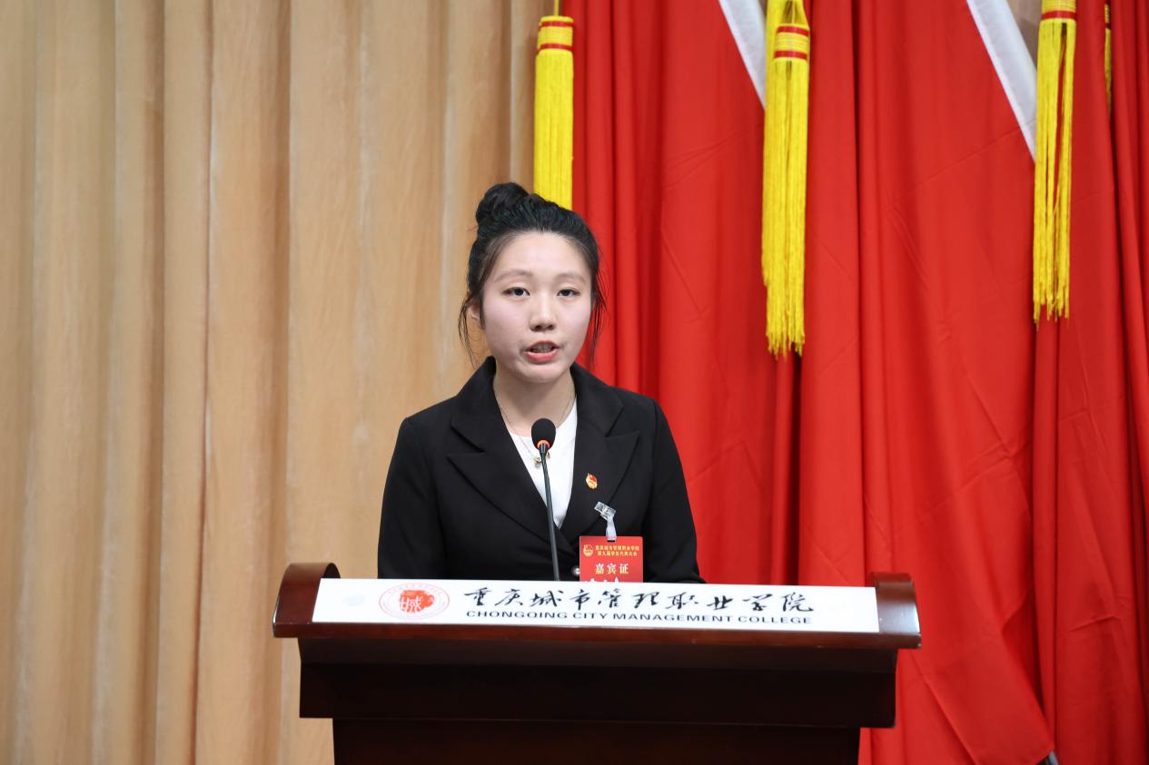 第九届学生代表大会在庄严的国歌声中正式开幕。市学联驻会执行主席张世超宣读了重庆市学生联合会《关于同意召开重庆城市管理职业学院第九届学生代表大会的批复》。在大会上,校团委书记王婧发表了致辞,肯定上一届学生会工作成效,号召新一届学生会聚焦政治引领、主责主业与改革创新,团结带领全校青年学生为学校建设高水平职业大学、为强国建设和民族复兴伟业贡献青春力量。