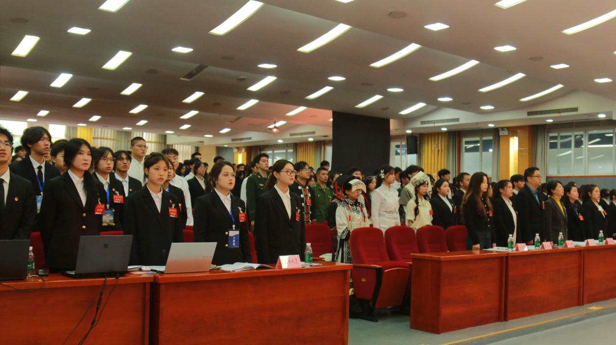 11月11日,我校第九届学生代表大会在学术报告厅隆重开幕。学校党委委员、副校长周毅,党委学工部副部长、学生处副处长郑添华,团委书记王婧,各二级学院团总支书记以及全校301名学生代表参会。