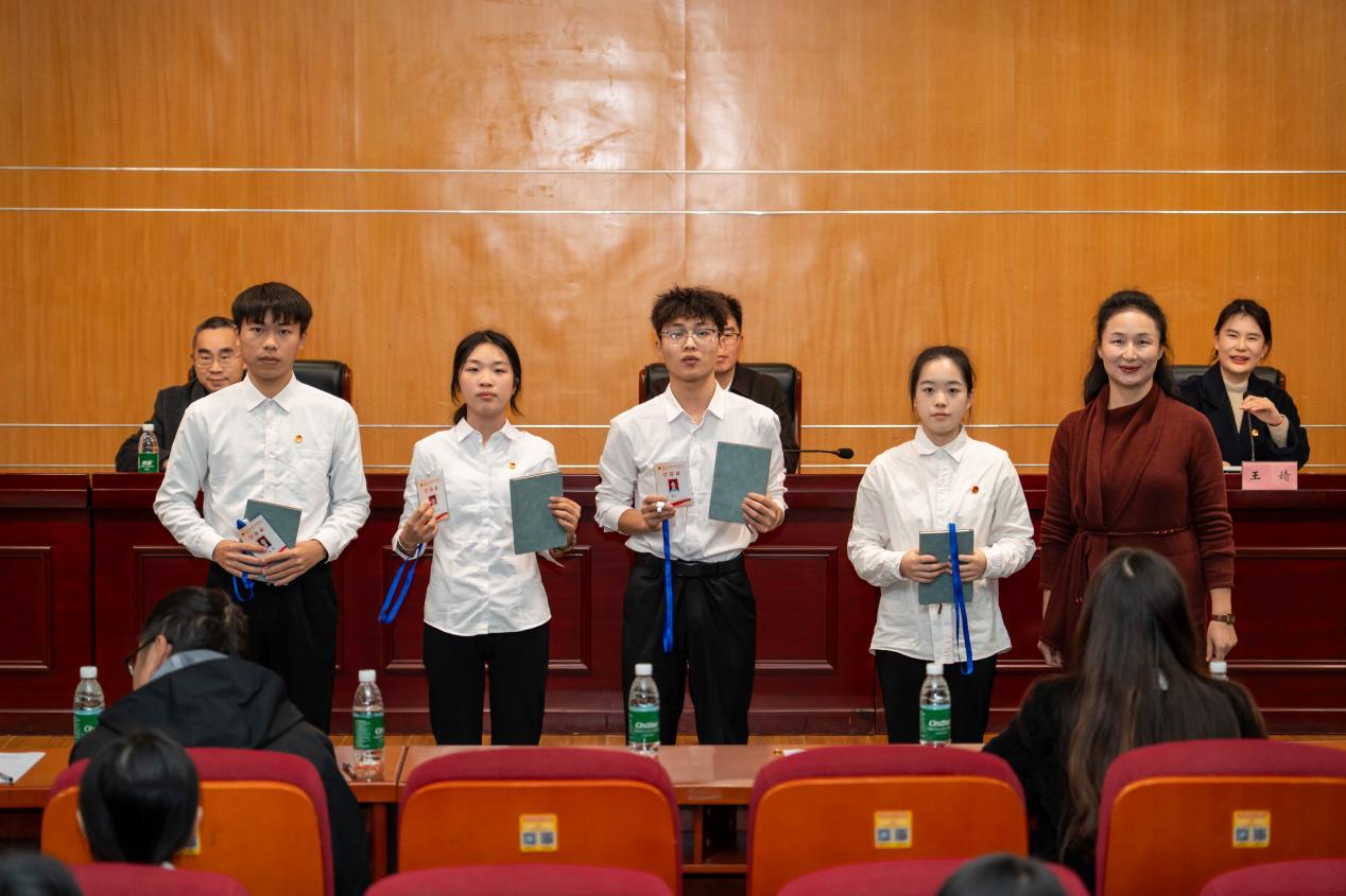 张媛艺为学员代表配发学员证,学员正式开启青马工程学习征程。学员代表秦爽同学发言,她表示将倍加珍惜本次培训机会,在理论学习中坚定信仰,在实践锻炼中锤炼本领,努力成长为合格的青年马克思主义者,以实际行动践行青春誓言。随后,李益平为2025年“青马工程”大学生骨干培训班授旗。