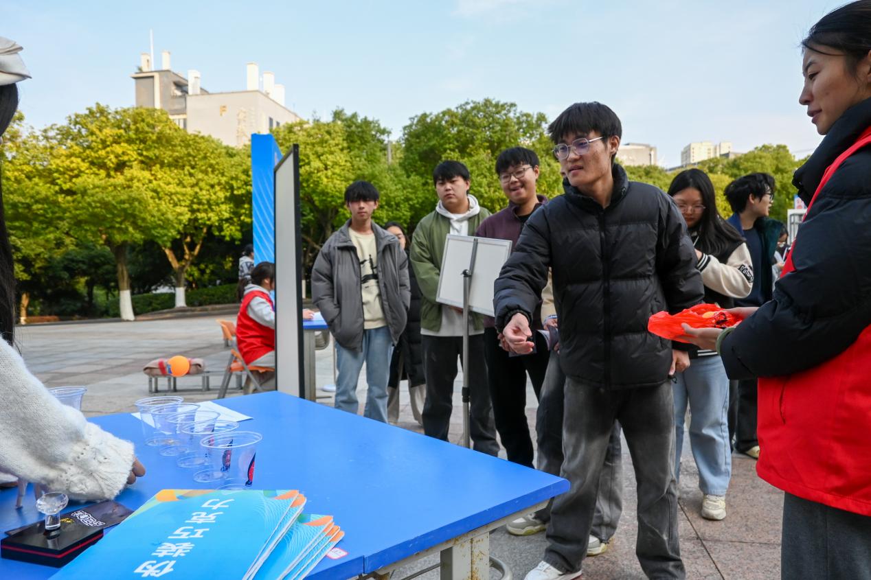 与此同时,敏学楼广场的“青春不‘毒’行健康伴我行”闯关赛同样热度高涨。“投球识毒品”“毒品拼词战”“缉毒小能手”等特色环节,将毒品种类识别、危害认知等内容转化为趣味挑战。同学们在闯关过程中,通过实物联想、知识比拼等方式,认清了新型毒品的隐蔽性与危害性,进一步筑牢了“珍爱生命、远离毒品”的思想防线,现场丰厚奖品的设置更激发了大家的参与热情。