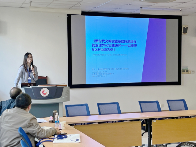 11月30日下午,年会还举办了多场分论坛研讨会,来自各大高校的教师及研究生分享了各自的研究成果,我校教师积极参与会议各项议程。曹渝老师在分论坛“党的社会工作理论体系构建与西南实践探索”中,以《新时代⽂明实践基层阵地建设的治理异化实践研究——以重庆G区H街道为例》为题进行了专题发言。该研究基于本土实践案例,深入剖析了基层文明实践阵地在运行中出现的治理异化现象、成因及其应对路径,引发了与会学者的热烈讨论与思考。