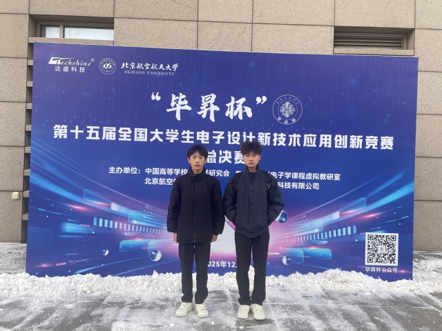 12月13日, 第十五届“毕昇杯”全国大学生电子设计新技术应用创新竞赛总决赛在北京航空航天大学圆满落幕。来自全国25个省份,150余所高校的近600余支队伍经过激烈的初赛选拔,最终125个团队成功晋级总决赛。经过激烈角逐,由智能工程学院陈婷老师指导的左祥林、单昱凯、刘武进等同学荣获全国二等奖。
