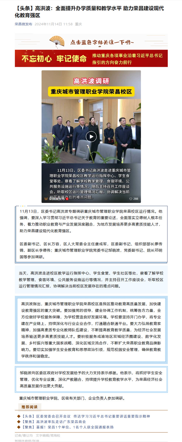 作者:荣昌学院审核发布:重庆城市管理职业学院发布者:党委宣传网工部发布时间:2024-11-14浏览次数:10