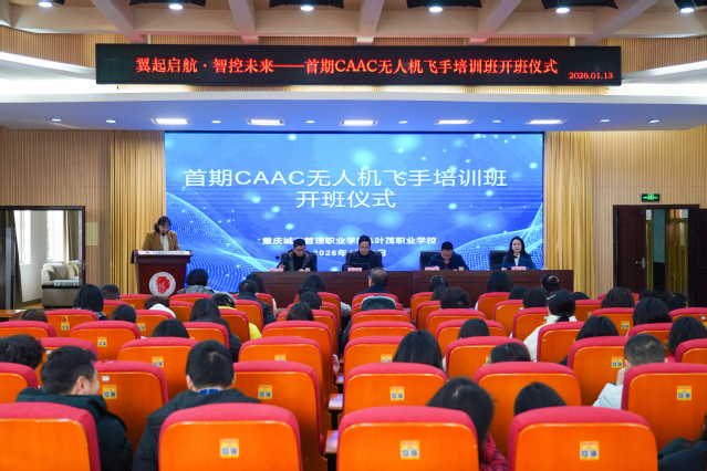 1月13日上午,由我校与荣昌叶茂职业培训学校联合举办的首期CAAC无人机飞手培训班开班仪式在学校大学城校区103会议室顺利举行。仪式通过视频直播方式与荣昌校区分会场同步进行,两校相关负责人、教员团队及百余名学员共同参加开班仪式。