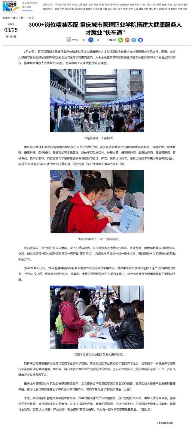 作者:智慧康养学院、党委宣传网工部审核发布:重庆城市管理职业学院发布者:党委宣传网工部发布时间:2026-03-25浏览次数:10