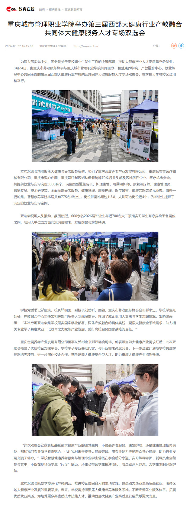 作者:智慧康养学院、党委宣传网工部审核发布:重庆城市管理职业学院发布者:党委宣传网工部发布时间:2026-03-27浏览次数:10