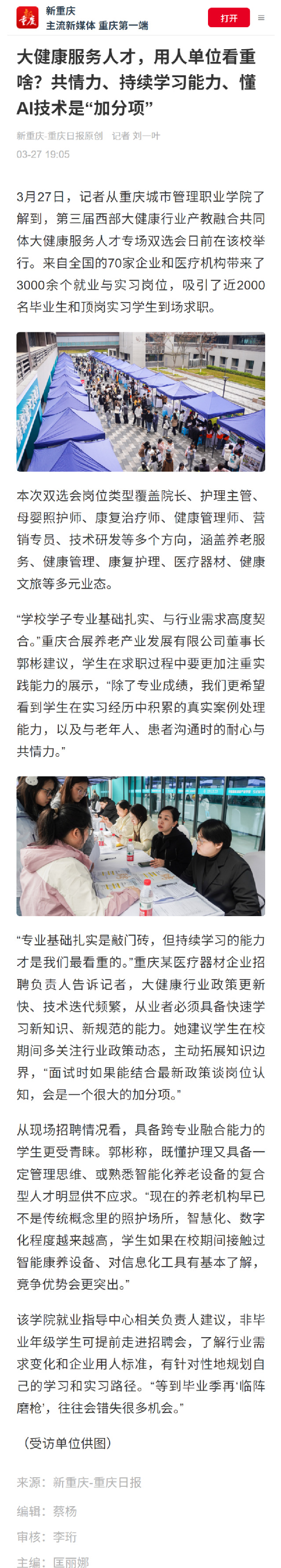 [重庆日报]大健康服务人才,用人单位看重啥?共情力、持续学习能力、懂AI技术是“加分项”
