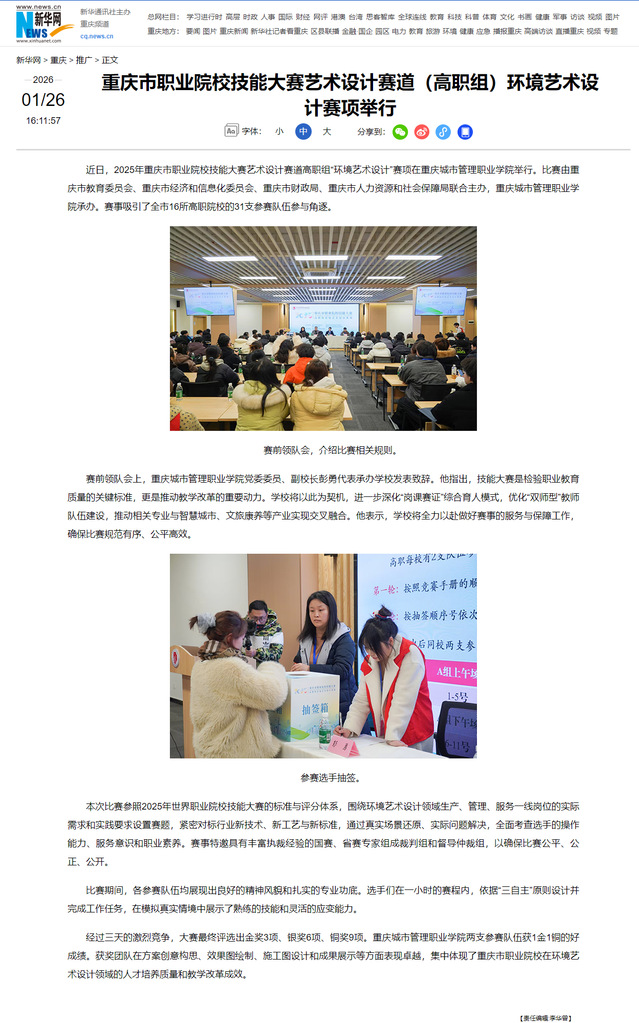 作者:文化与旅游学院、党委宣传网工部审核发布:重庆城市管理职业学院发布者:党委宣传网工部发布时间:2026-01-26浏览次数:10