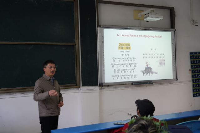 为充分引导留学生感知中华优秀传统文化的魅力,深化中国国情理解教育,3月31日下午,通识教育学院党总支在敏学楼E201组织开展了一场别开生面的“中文+传统文化”来华留学生国情教育志愿服务活动(清明篇)。学院党总支副书记伏斐及语言文字应用推广党支部教师党员参加活动。活动由《中国概况》主讲教师、副教授邓春梅主持。