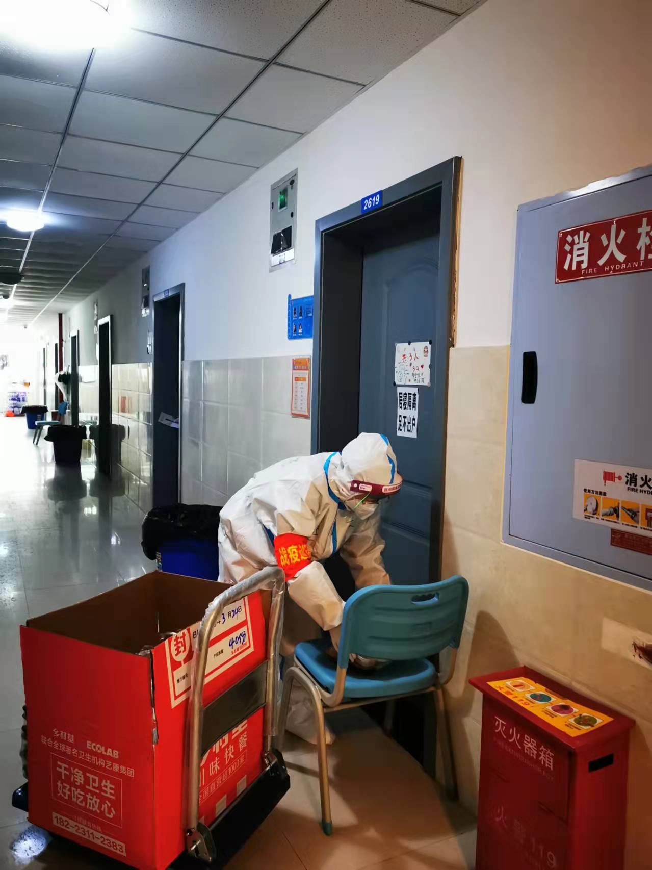 疫情防控初期,学生社区6层楼的餐食全靠人工搬运,派发一顿饭需要几个小时。“重庆30多度的天气,穿上防护服,一会工夫就浑身湿透了,面罩也模糊了,提着食物爬楼,整个人筋疲力尽的,不能喝水补充水分,不能停下来……回到宿舍,衣服都可以拧下水来。”李老师说到。得知没有足够的短袖换洗,王颖老师第一时间帮忙领取了几个T桖送过来;同在学生社区的老师们帮忙申请了水壶、夏季薄裤子等;对接党支部的送餐老师们得知他们的困难,也给予了一定的帮助;羊老师送来了一些茶叶……。好心人的帮助,使李老师的心里暖暖的。