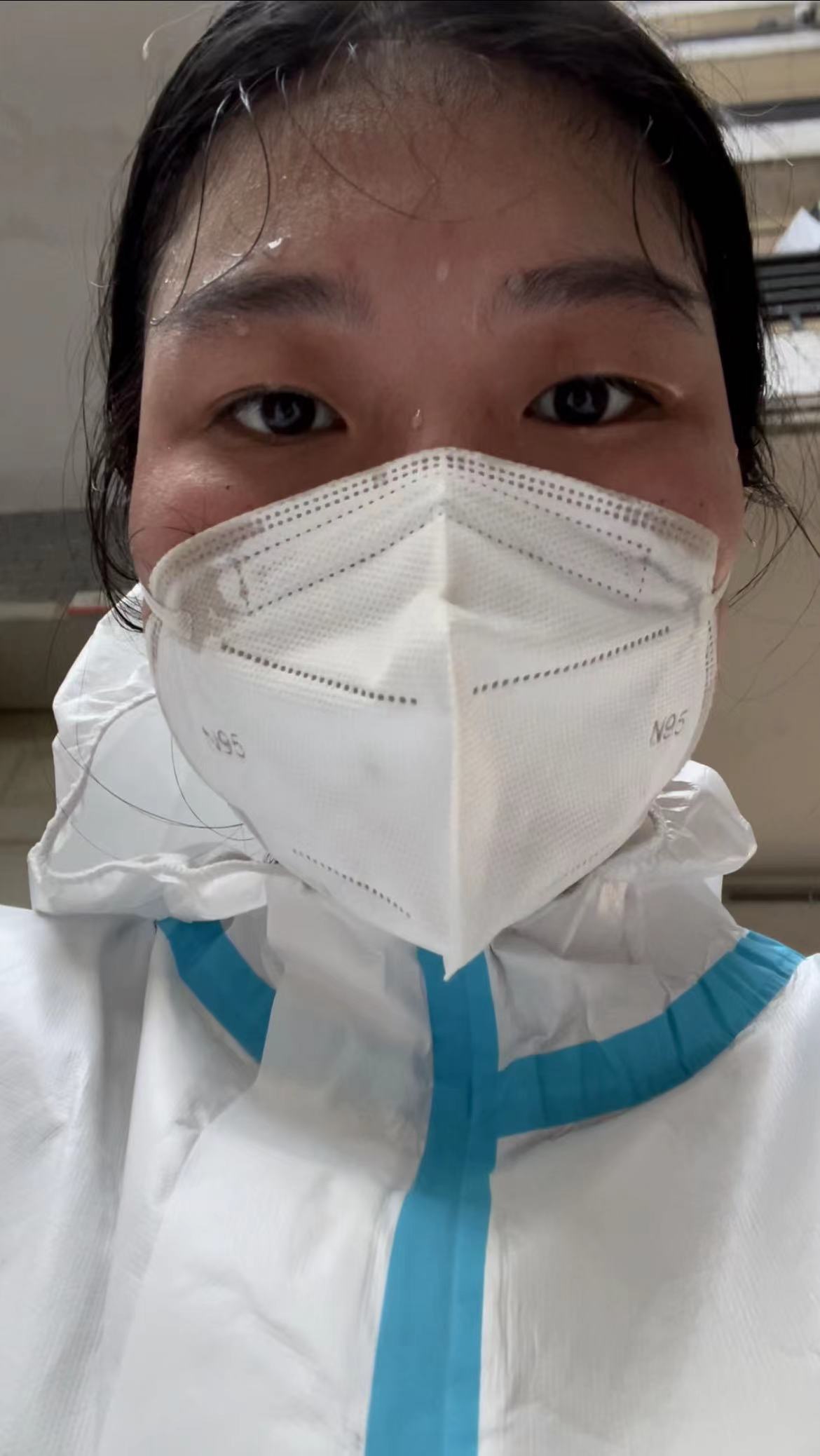生活获得基本保障的汪丹丹开始考虑以个人的力量为疫情防控工作做出贡献。她了解到,由于疫情防控安排,校内学生被隔离在宿舍,学生餐食、基本生活用品、消毒药品都需要安排人员送到宿舍门口,校内教师人手严重不足,校外教师又被社区安排隔离无法返校支援,校内一日三餐的打包工作和送餐任务变得格外艰巨。面对这样的难处,她主动申请成为学生社区致远园一舍的志愿者。疫情之初,学生宿舍没有吊运机器送餐,她在30℃的高温天气下套着厚重的防护服,从头到脚把自己包裹起来,一层层爬楼送餐。为了保证把热气腾腾的三餐送到学生宿舍门口,她凭着一身力气提着餐盒一栋楼跑上跑下好多来回,每一次送餐后脱掉防护服,全身都被汗水打湿,整个就像被水里捞起来的一样。但是在看到学生配合志愿者送餐把宿舍的人员信息等画出来贴在宿舍门口,看到学生在纸条上留言写着“大白辛苦了”,看到通知群里面学生们的光盘反馈,汪丹丹觉得自己在做一件很有意义的事儿,在为了城管校战“疫”工作助力。