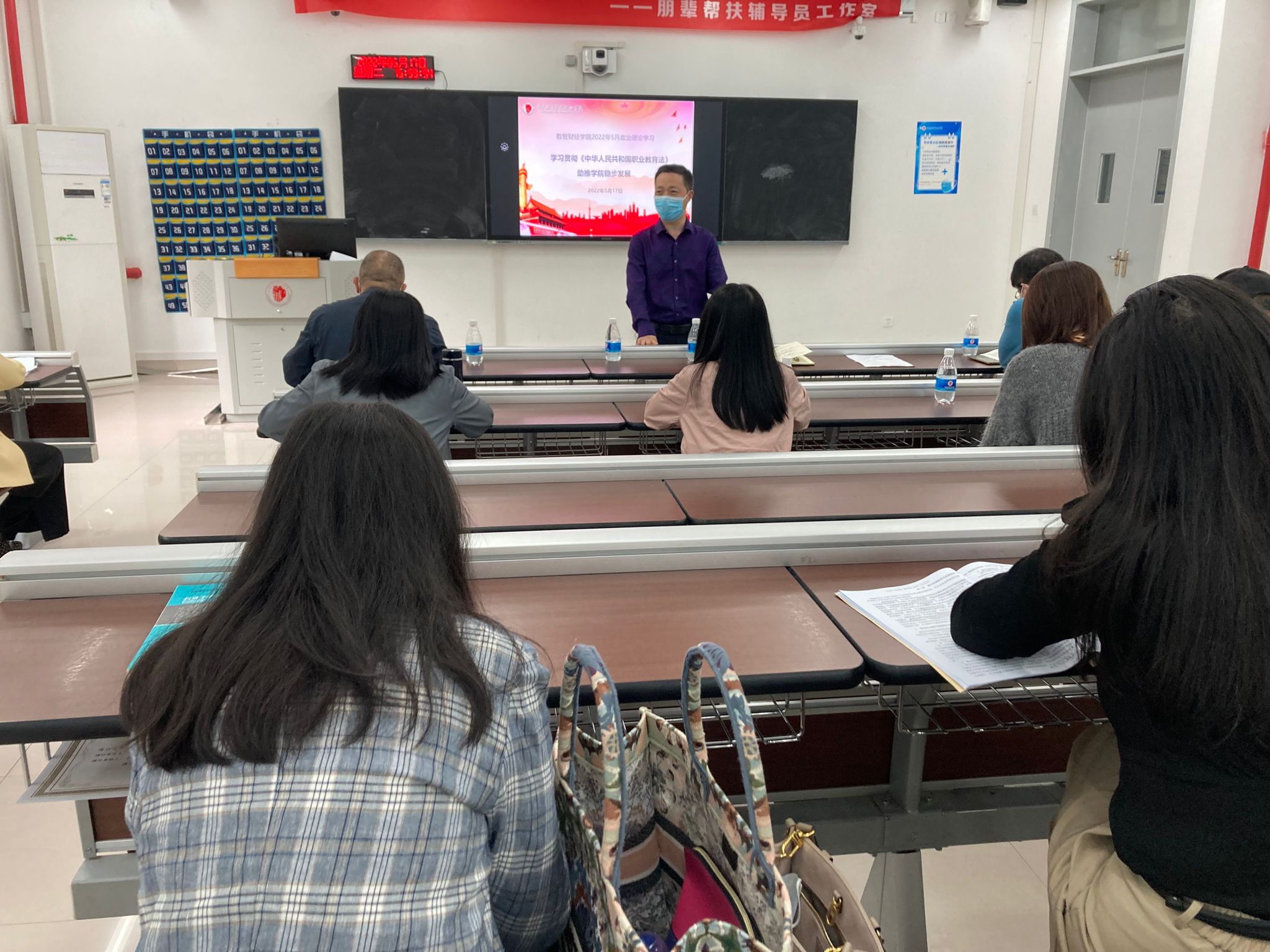 随后,学院副院长、党总支副书记黄倩同志领学《习近平考察中国人民大学:坚持党的领导传承红色基因扎根中国大地 走出一条建设中国特色世界一流大学新路》,并就《中华人民共和国职业教育法》相关内容进行了详细的讲解。党总支副书记刘小刚同志通报了《教育部公开曝光第九批7起违反教师职业行为十项准则典型案例》,希望老师们严格落实教师职业行为十项准则要求,做好“传道授业解惑”的“经师”和“人师”。