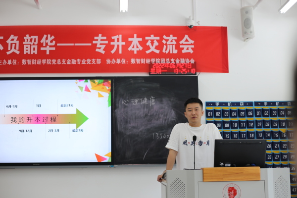 为提高同学们对专升本的认识,解答专升本备考期间之困惑,找到学习方向,收获学习经验,规划学习目标。依托金融专业特色党建品牌项目,数智财经学院党总支金融专业党支部、金融协会于2022年6月27日中午12:30——13:40于致用楼C106开展“青春筑梦,不负韶华——专升本交流会”,参会人员共计100余人。