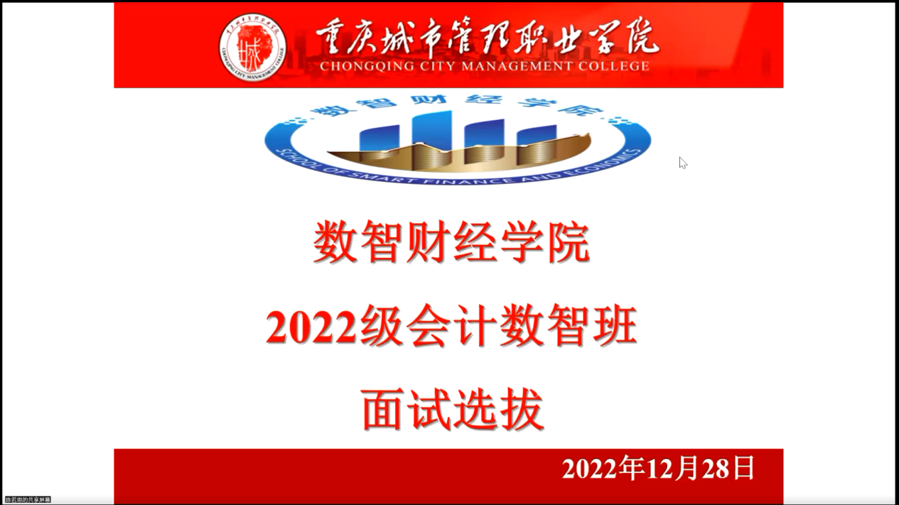 2022年12月28日,2022级“会计数智班”面试选拔会在线上成功举行。在数智财经学院副院长(主持工作)兼专业带头人黄菊英教授带领和指导下,数智财税教研室教师主任阳勇、数智财税教研室教师专任教师聂蕊、陈若思、张艺馨、黄孝平和邹博宇博士以及2022级辅导员李俊璋老师参与面试会议组织与选拔。2022级大数据与会计专业、大数据与财务管理专业以及金融服务与管理专业学生约40人参加了面试选拔会议。