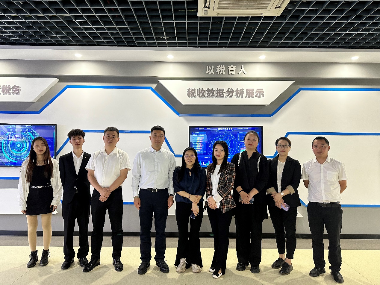 5月23日,四川航天信息有限公司企业信息化事业部总经理周晓东、副总经理文菊、院校合作业务经理沈芳纯等一行至我院实训基地参观交流,陪同参观的有重庆航天信息有限公司校企合作副总经理甘华玲、副总经理郑波。黄菊英副院长(主持工作)与重庆航天信息有限公司校企合作驻我院专员杨星分别为来宾介绍了我院财经商贸共享实训基地——数智产教基地和金税文化馆。