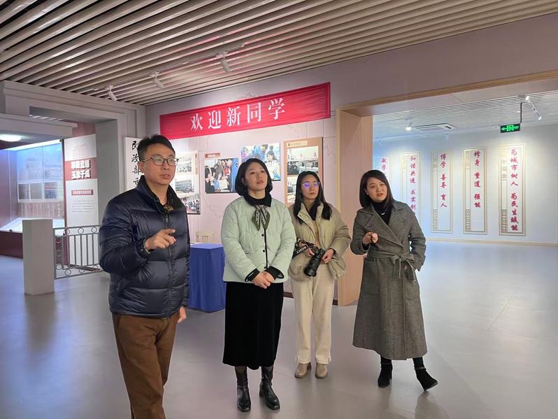 2025年12月26日下午,重庆护理职业学院党建思政部副部长李济良一行3人到我校考察交流校史工作。档案馆馆长杨柳热情接待并陪同参观校史校情教育基地(以下简称校史馆)。
