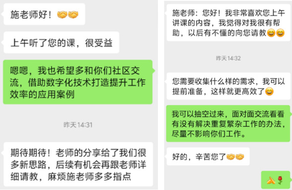 课堂上,施旭老师结合自身丰富的技术研发与教学经验,通过“理论讲解+实操演示”的方式,将复杂的技术逻辑转化为通俗易懂的操作步骤。针对社区工作中常见的信息统计繁琐、服务传播范围有限等痛点,现场演示了如何运用AI工具快速生成活动方案、自动整理居民需求数据,以及通过智能平台实现服务资源的精准匹配,让参训学员直观感受数智技术提升工作效能的实际价值。培训结束后,参训学员纷纷表示收获颇丰,不仅掌握了实用的数智工具使用技巧,更打开了社区服务创新的思路,将在后续工作中积极尝试运用所学技术提升服务质量。