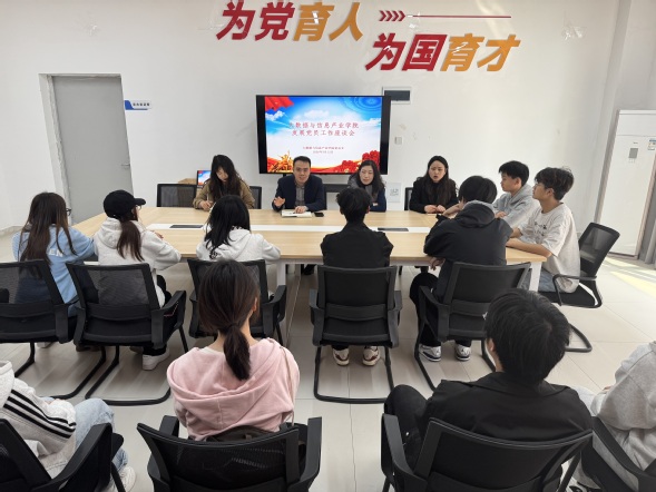 为深入贯彻落实新时代党的建设总要求,严格执行《中国共产党发展党员工作细则》等文件政策精神,切实提升学院发展党员工作质量,3月15日,大数据与信息产业学院在荣昌校区润心园1109会议室召开发展党员工作专题座谈会。学院党总支副书记江茂森,荣昌校区辅导员及2025级学生代表参会。会议由学院专职组织员龙杜娟主持。