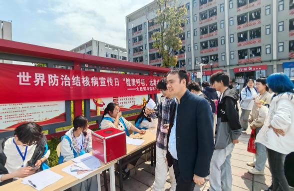 在“肺结核防治”宣传活动现场,江茂森副书记与在场学生进行交流,详细了解活动筹备、科普内容设计及学生参与情况。他强调,结核病防控关乎全院师生健康安全,要持续丰富宣传形式,通过亲身体验、现场答疑、知识互动等方式,让学生全面掌握结核病传播途径、预防措施及诊疗政策,切实提升自我防护意识与能力,牢固树立“健康第一”的理念。