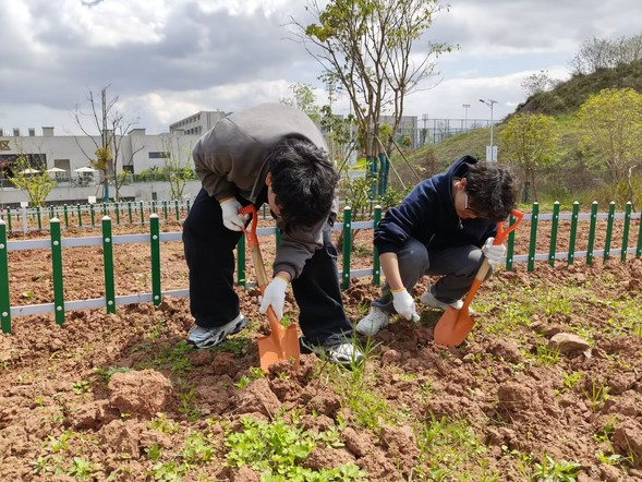 活动现场,师生们分工协作、默契配合,构成了一幅生动的劳动画卷。老师们以身作则、率先垂范,与同学们并肩劳作,挥铲翻土、清理杂草石块、起垄作畦,一边示范农耕技巧,一边耐心讲解农作物生长规律和劳动安全知识,细致解答同学们的疑问。随后,大家一同挥汗如雨,播种时共护希望的种子,栽苗时同调株距、细心浇灌,劳作间隙交流感悟、分享经验,欢声笑语回荡在田间。汗水浸湿衣衫,笑容洋溢脸庞,同学们在躬身劳作中跳出书本局限,不仅掌握了基本的农耕劳动技能,更在相互配合中增进了友谊、锤炼了团队协作能力,真切体会到“一粥一饭,当思来处不易”的深刻内涵,树立起“劳动最光荣、劳动最崇高”的价值理念。