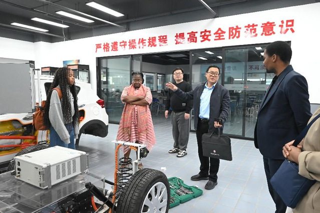 随后,代表团先后参观了我校世界技能大赛美容项目中国集训基地、新能源汽车实训基地、ICT学院,并对我校基础设施设备、专业教学成果等给予高度评价。