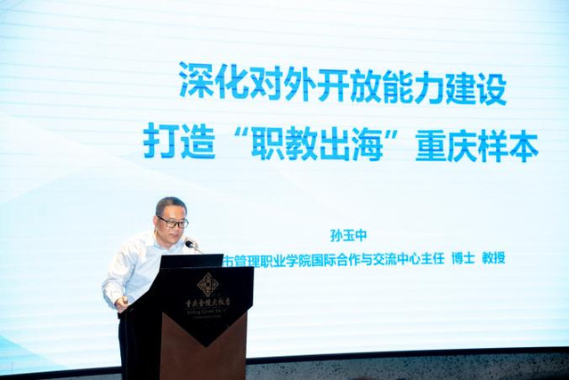 邓明国在致辞中简要介绍了学校概况及国际化办学成果,指出希望能以论坛为纽带,搭建起多元合作平台,汇聚“抱团出海”合力,为职业教育高水平开放注入新动能。学校将以此为契机,持续夯实国际化办学根基,精心打造高质量国际合作项目,着力推动更多特色优势职业教育资源出海,为重庆加快打造内陆地区教育开放合作窗口、建设新时代教育强市贡献力量。