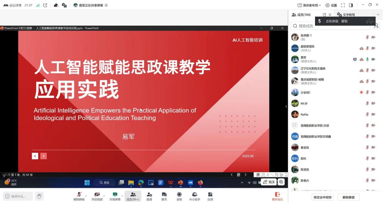 本次培训以掌握人工智能赋能思政课教学的实践路径,切实提升思政课教师教学能力为主要目的,特别邀请了重庆工业职业技术学院易军教授进行专题报告,同时邀请了渝辽两地成员单位的200余名思政课教师参与本次培训。