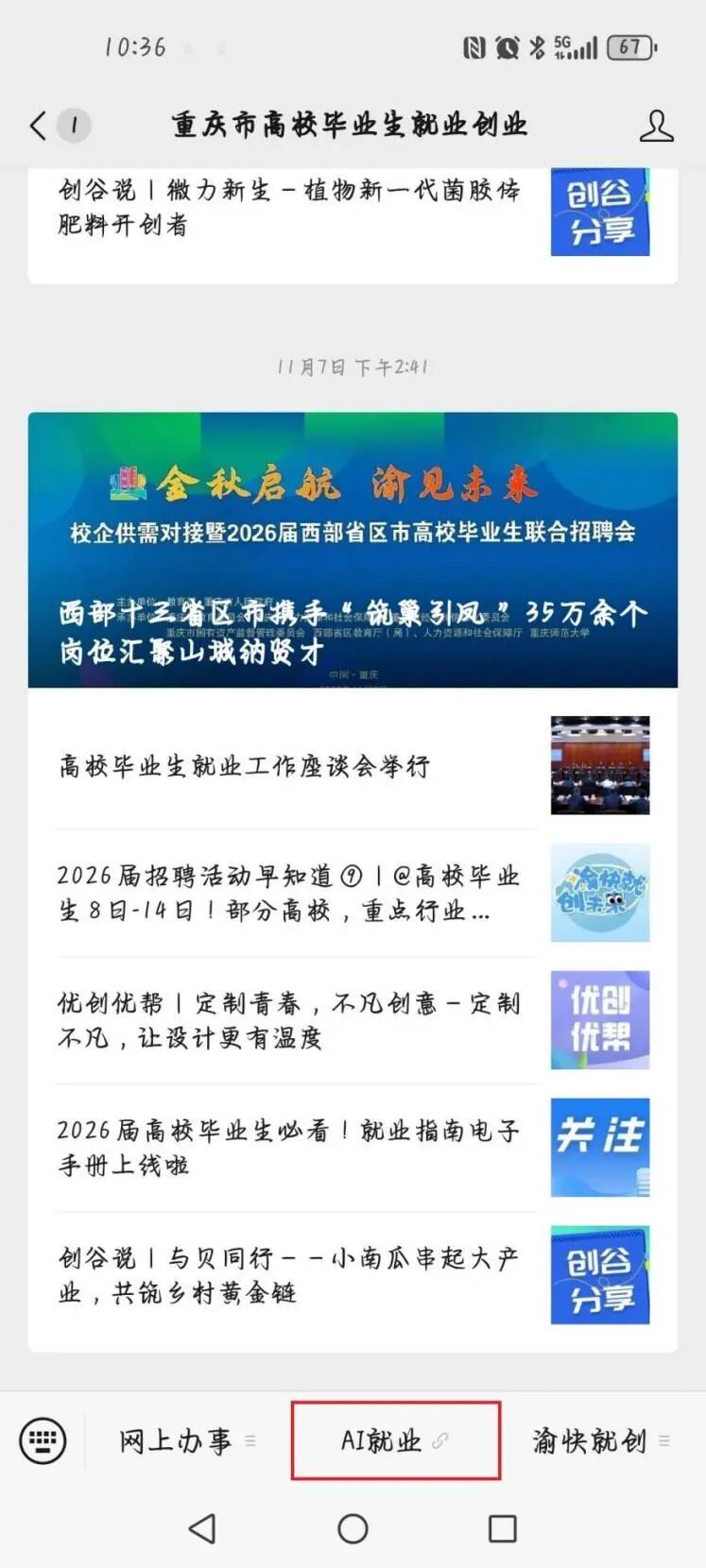 点击公众号底部菜单栏的 “AI就业”。